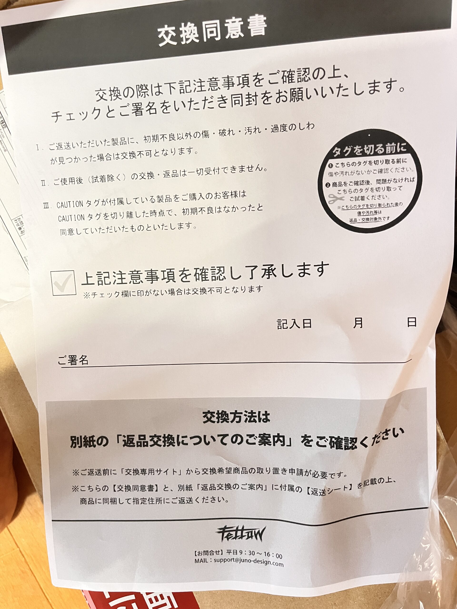 ただし丸タグを切ってはいけません。試着したり触ったりする前に全体に傷がないかある程度チェックしておきましょう!
