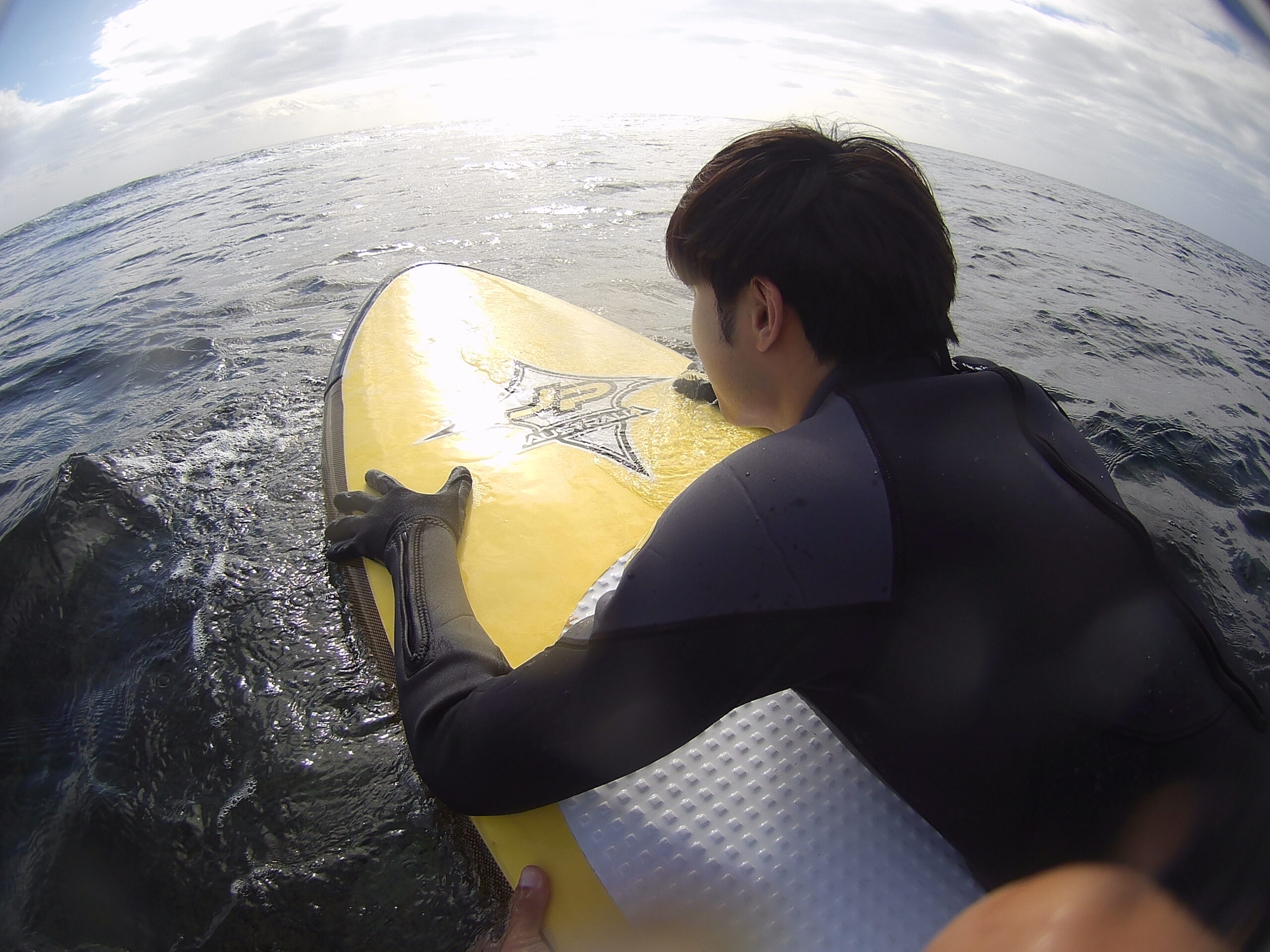 沖縄で初サーフィン!香港の方に遊びに来ていただきました!冬型の気圧配置になってきた沖縄は北風が増えてきて肌寒い日が増えています。観光の方はまだまだ暖かいみたいです。
