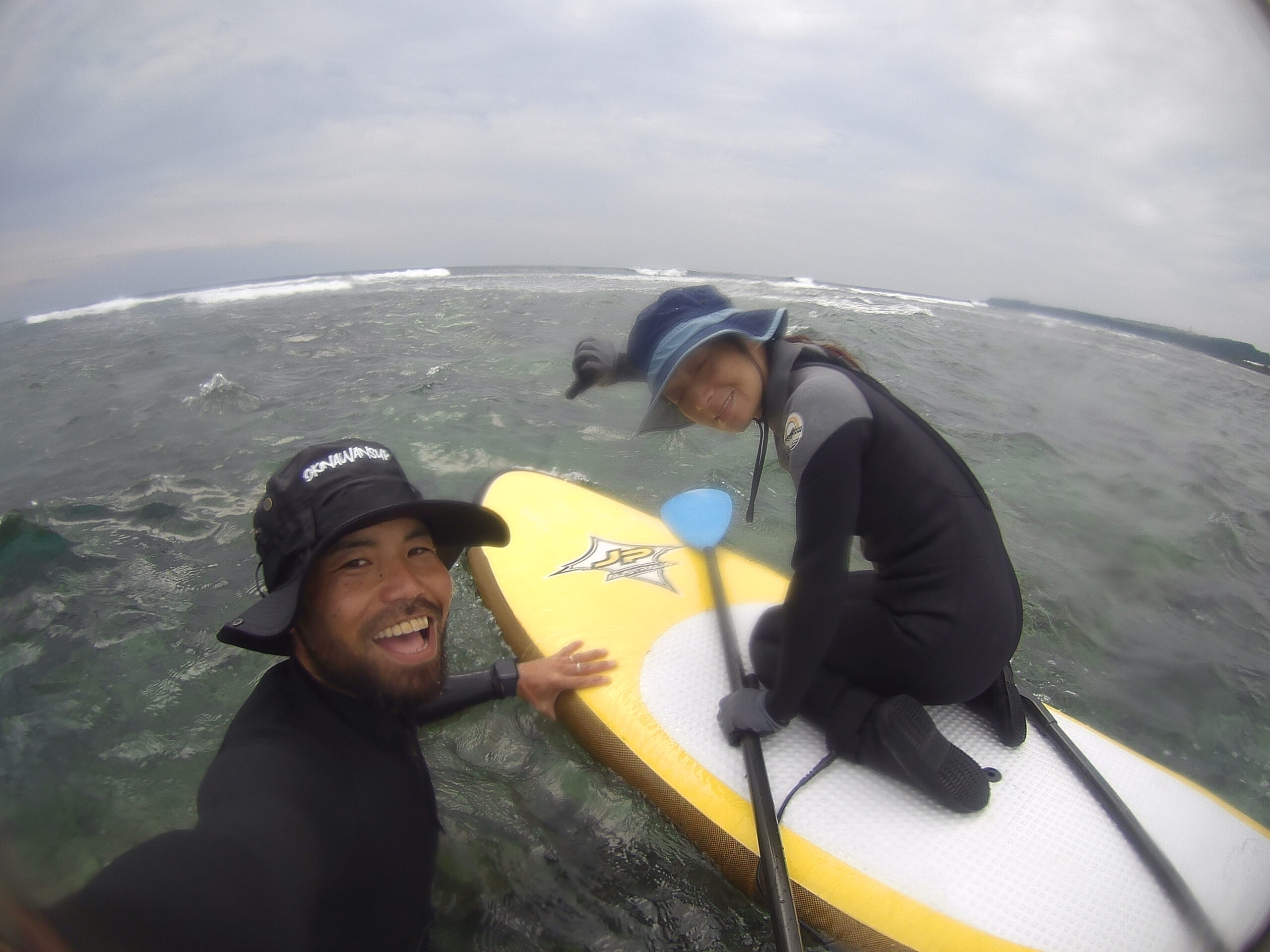 落ちたり、波に乗れたりと波乗りを満喫!!「思っているより、難しかったー!、またチャレンジします。お願いします!」と不安だった表情からニコニコ笑顔に変わっていました。案内させていただいて嬉しい表情を見られると本当に最高です!