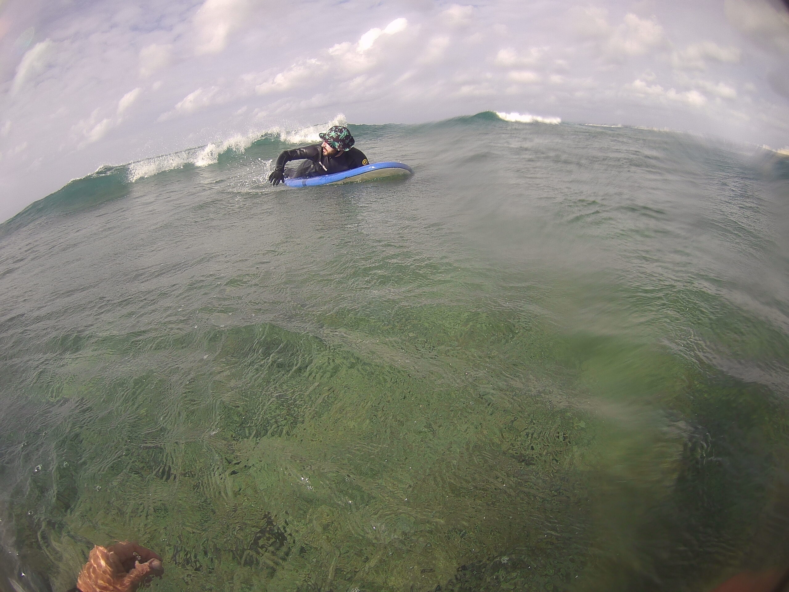 沖縄で初サーフィン!イタリア出身の方に遊びに来ていただきました!冬から春の気圧配置になってきた沖縄は風が回っています。コンディションは読みづらい日が続いています。