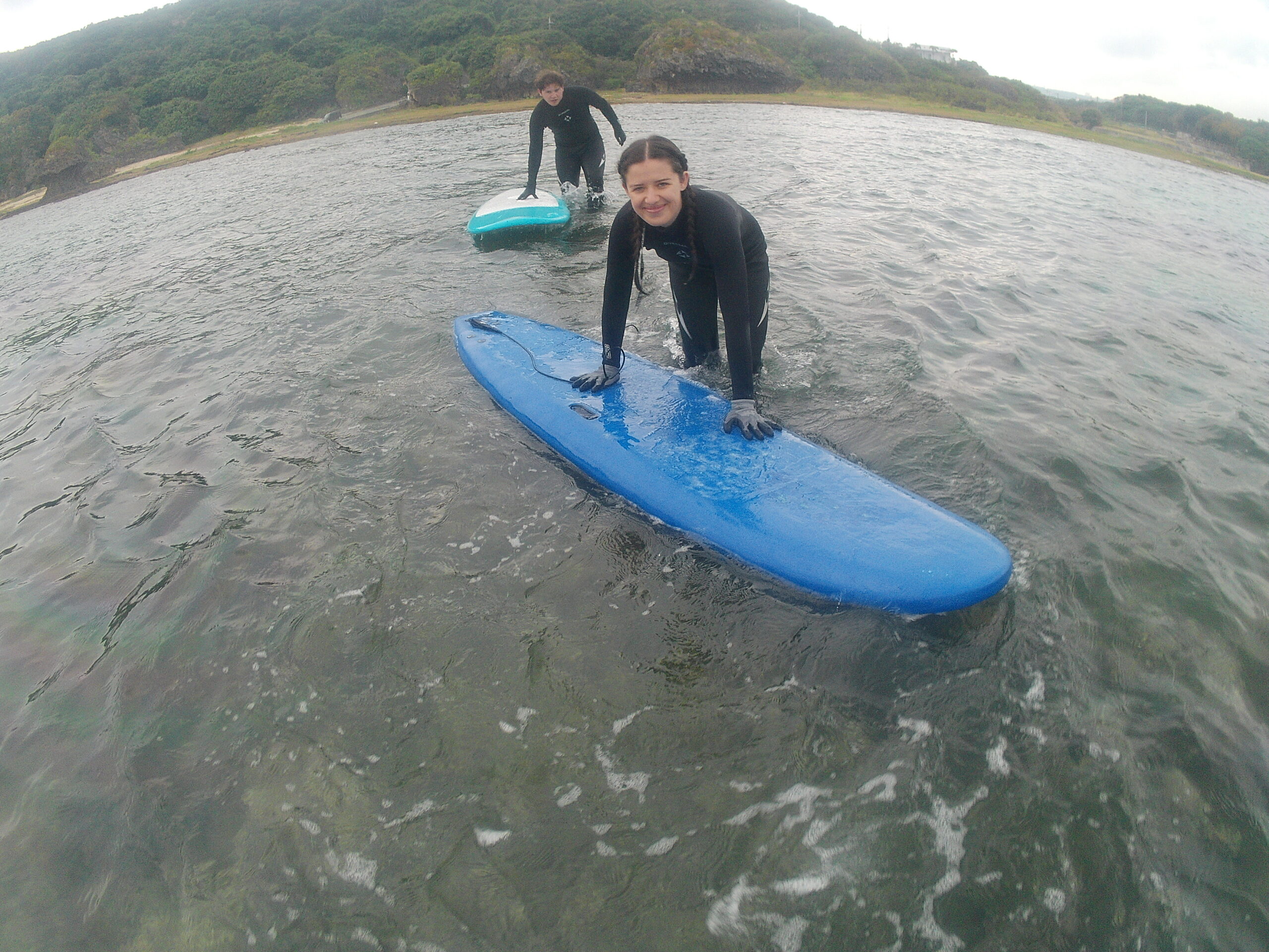 沖縄で初サーフィン!ドイツからお越しのお二人様。ヨーロッパでは長期休みが当たり前みたいでして、3週間の休みで日本旅行を楽しみ、沖縄も訪れているそうです。